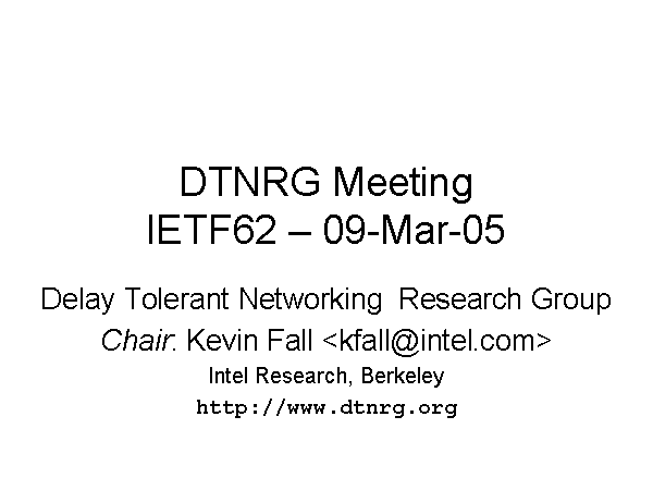 DTNRG MeetingIETF62 – 09-Mar-05