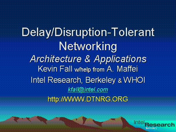 Delay/Disruption-Tolerant NetworkingArchitecture & Applications