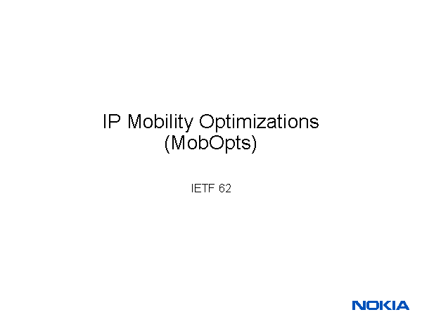 IP Mobility Optimizations (MobOpts)