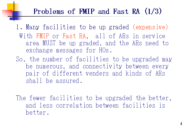 With FMIP or Fast RA, all of ARs in service area MUST be up graded, and the ARs need to exchange messages for HOs.