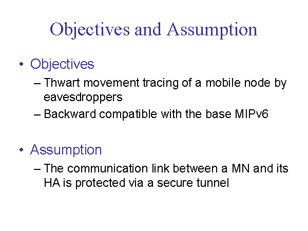 Objectives and Assumption