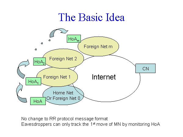Eavesdroppers can only track the 1st move of MN by monitoring HoA