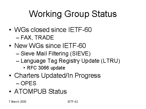 New WGs since IETF-60