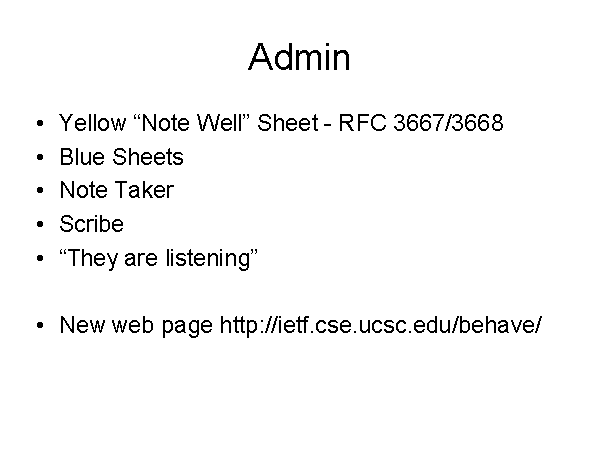 New web page http://ietf.cse.ucsc.edu/behave/