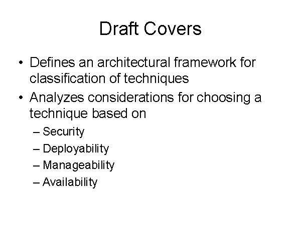 Defines an architectural framework for classification of techniques