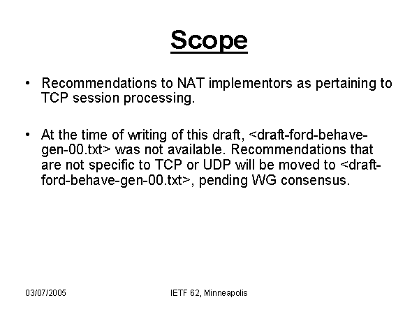 Recommendations to NAT implementors as pertaining to TCP session processing.