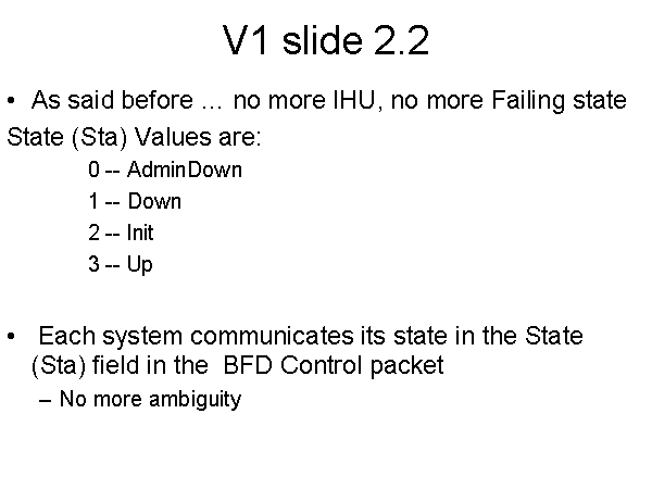 Each system communicates its state in the State (Sta) field in the BFD Control packet