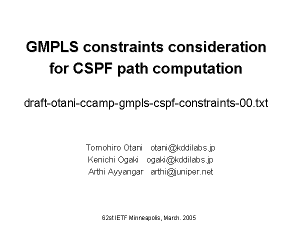 GMPLS constraints consideration for CSPF path computation draft-otani-ccamp-gmpls-cspf-constraints-00.txt