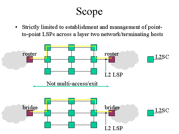 Strictly limited to establishment and management of point-to-point LSPs across a layer two network/terminating hosts