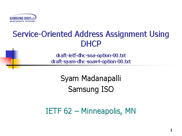 Service-Oriented Address Assignment Using DHCPdraft-ietf-dhc-soa-option-00.txtdraft-syam-dhc-soav4-option-00.txt
