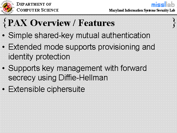 Supports key management with forward secrecy using Diffie-Hellman