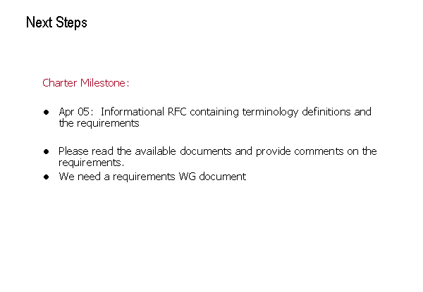 Apr 05: Informational RFC containing terminology definitions and the requirements