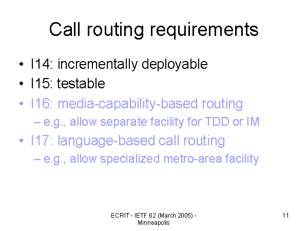 Call routing requirements