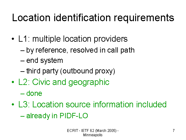 Location identification requirements