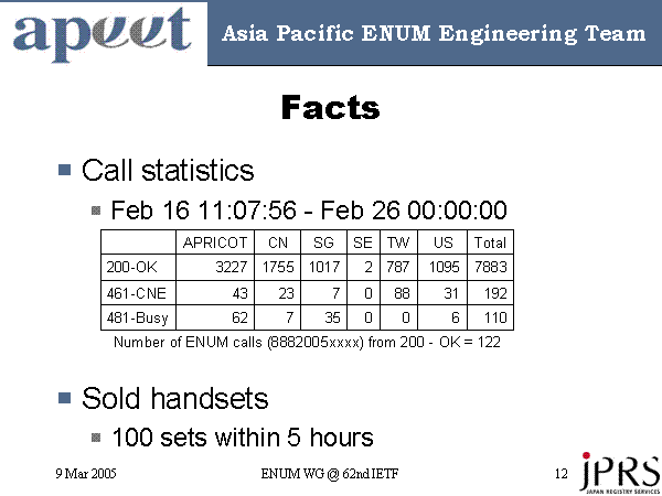 Number of ENUM calls (8882005xxxx) from 200 - OK = 122