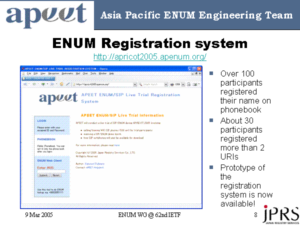 ENUM Registration systemhttp://apricot2005.apenum.org/