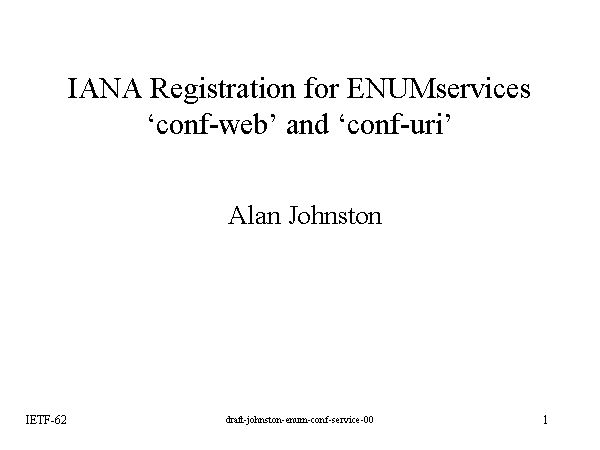 IANA Registration for ENUMservices ‘conf-web’ and ‘conf-uri’