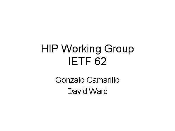 HIP Working GroupIETF 62