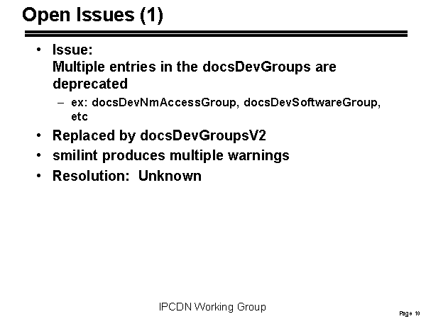 Issue: Multiple entries in the docsDevGroups are deprecated