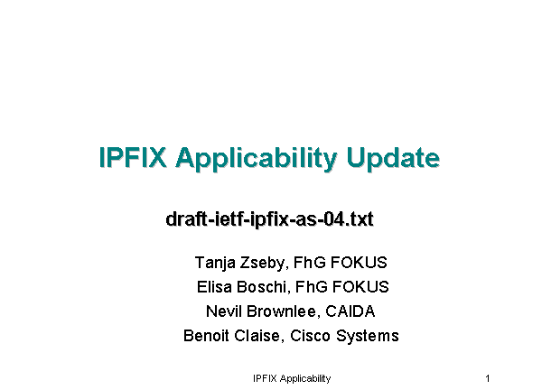 IPFIX Applicability Update draft-ietf-ipfix-as-04.txt