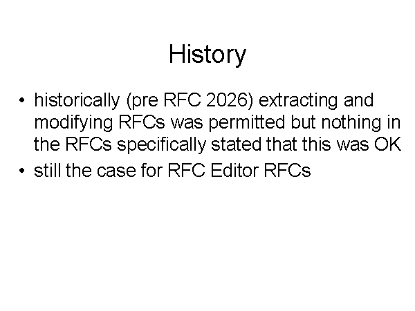 historically (pre RFC 2026) extracting and modifying RFCs was permitted but nothing in the RFCs specifically stated that this was OK