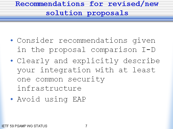 Consider recommendations given in the proposal comparison I-D