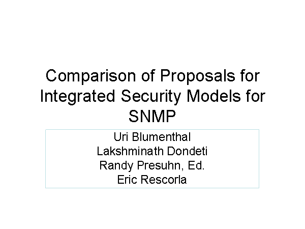Comparison of Proposals for Integrated Security Models for SNMP