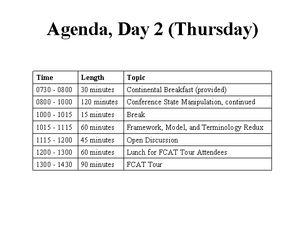 Agenda, Day 2 (Thursday)