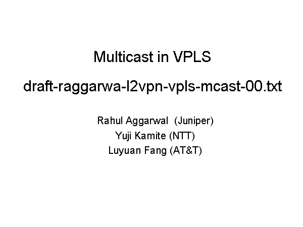 Multicast in VPLSdraft-raggarwa-l2vpn-vpls-mcast-00.txt