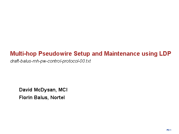 Multi-hop Pseudowire Setup and Maintenance using LDPdraft-balus-mh-pw-control-protocol-00.txt