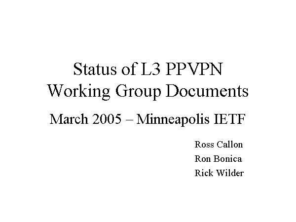 Status of L3 PPVPNWorking Group Documents March 2005 – Minneapolis IETF