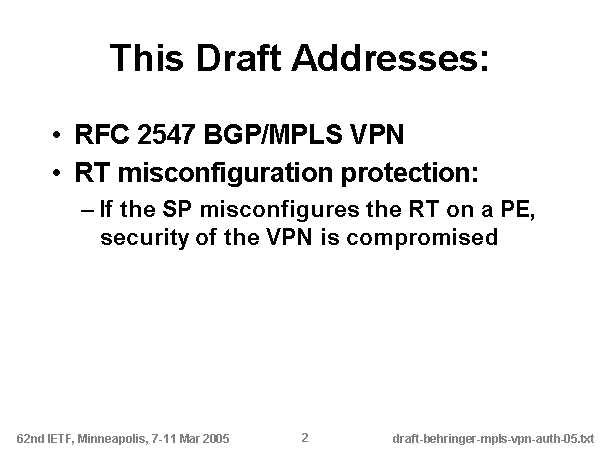 If the SP misconfigures the RT on a PE, security of the VPN is compromised