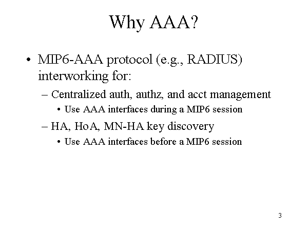 MIP6-AAA protocol (e.g., RADIUS) interworking for: