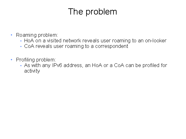 As with any IPv6 address, an HoA or a CoA can be profiled for activity