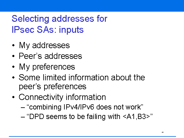 Selecting addresses for IPsec SAs: inputs
