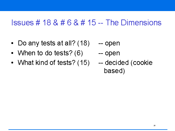 What kind of tests? (15) -- decided (cookie based)