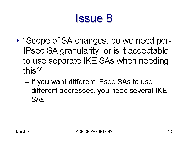 “Scope of SA changes: do we need per-IPsec SA granularity, or is it acceptable to use separate IKE SAs when needing this?”