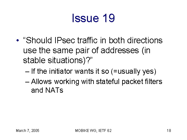 “Should IPsec traffic in both directions use the same pair of addresses (in stable situations)?”