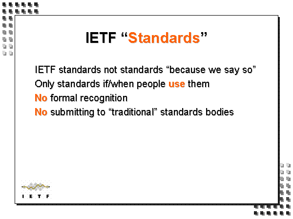 IETF standards not standards “because we say so”