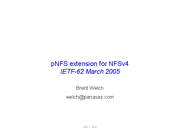 pNFS extension for NFSv4IETF-62 March 2005