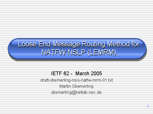 Loose End Message Routing Method for NATFW NSLP (LEMRM)