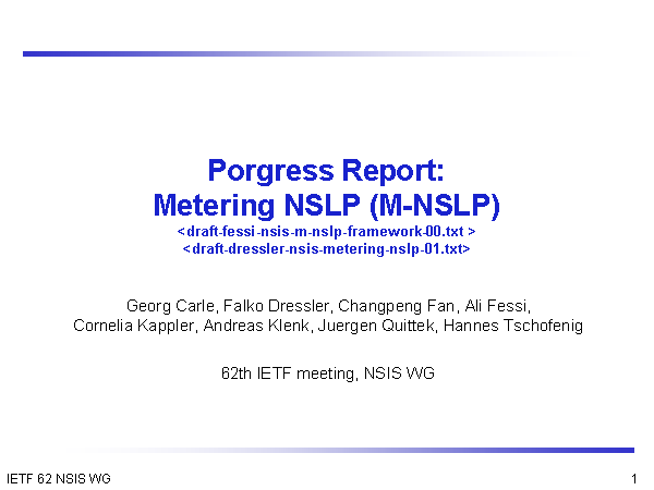 Georg Carle, Falko Dressler, Changpeng Fan, Ali Fessi, Cornelia Kappler, Andreas Klenk, Juergen Quittek, Hannes Tschofenig