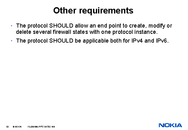 The protocol SHOULD allow an end point to create, modify or delete several firewall states with one protocol instance.