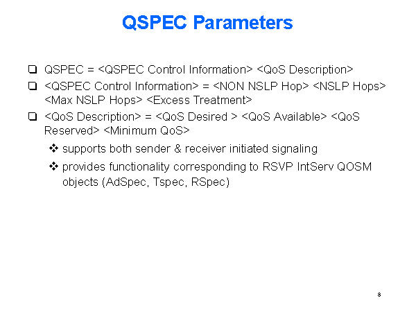 provides functionality corresponding to RSVP IntServ QOSM objects (AdSpec, Tspec, RSpec)