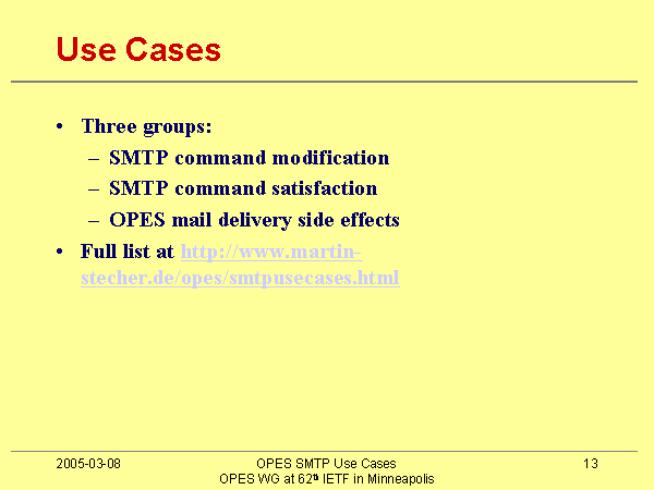 Full list at http://www.martin-stecher.de/opes/smtpusecases.html