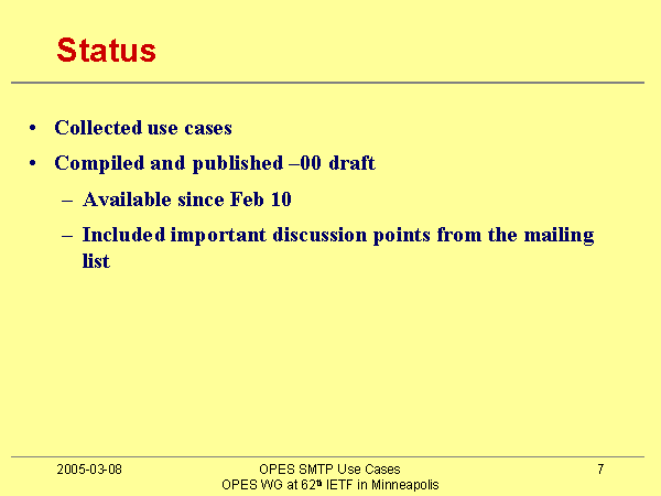 Included important discussion points from the mailing list