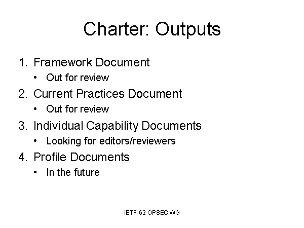 Charter: Outputs