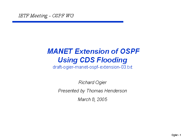 MANET Extension of OSPF Using CDS Floodingdraft-ogier-manet-ospf-extension-03.txt