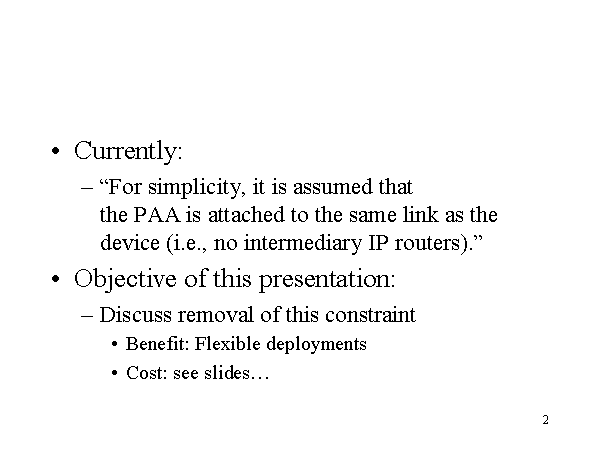 “For simplicity, it is assumed thatthe PAA is attached to the same link as the device (i.e., no intermediary IP routers).”