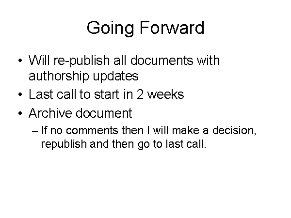 If no comments then I will make a decision, republish and then go to last call.